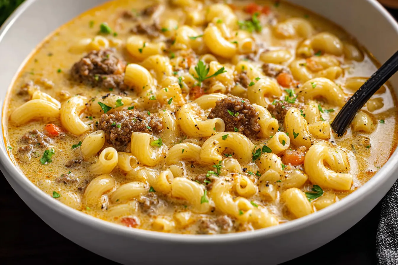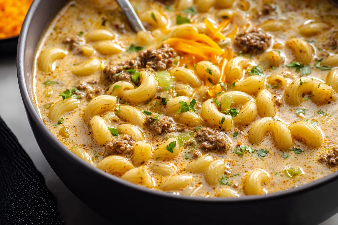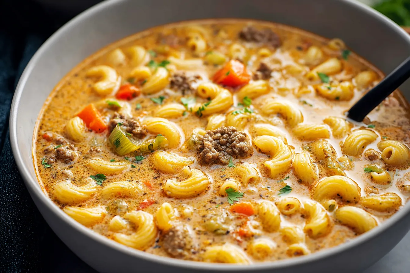 Indulge in cheesy goodness with our creamy one pot cheeseburger mac soup Easy to make this delight will satisfy your cravings in no time