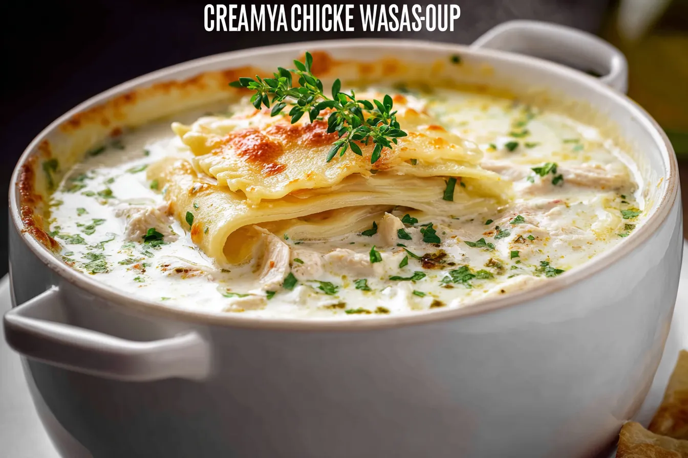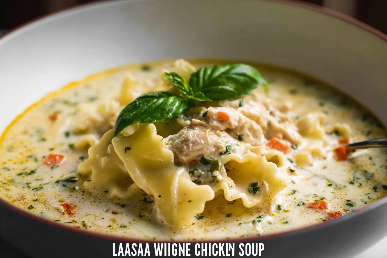 Indulge in this easy delicious creamy white chicken lasagna soup Perfect comfort meal for any day combining rich flavors in every spoonful