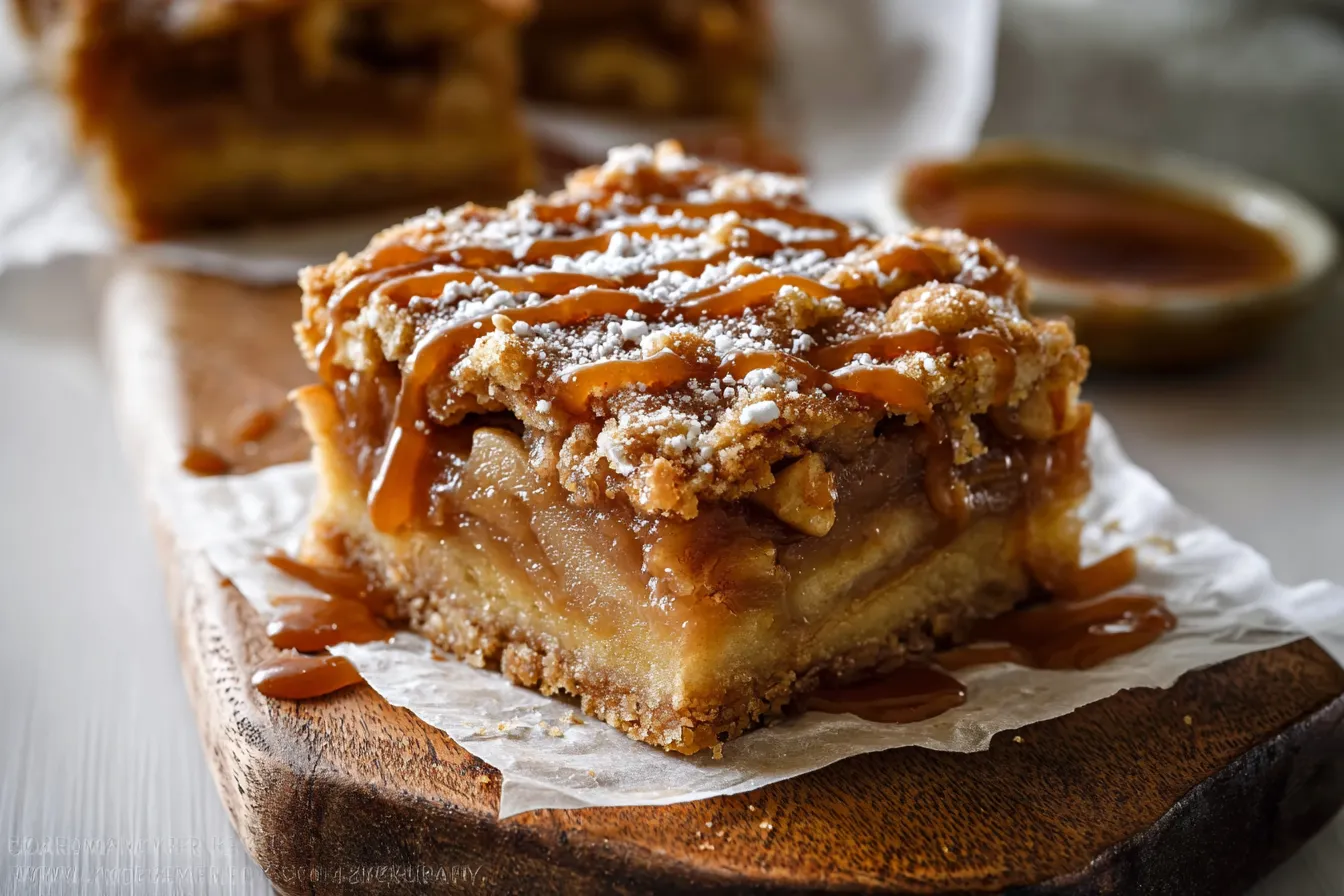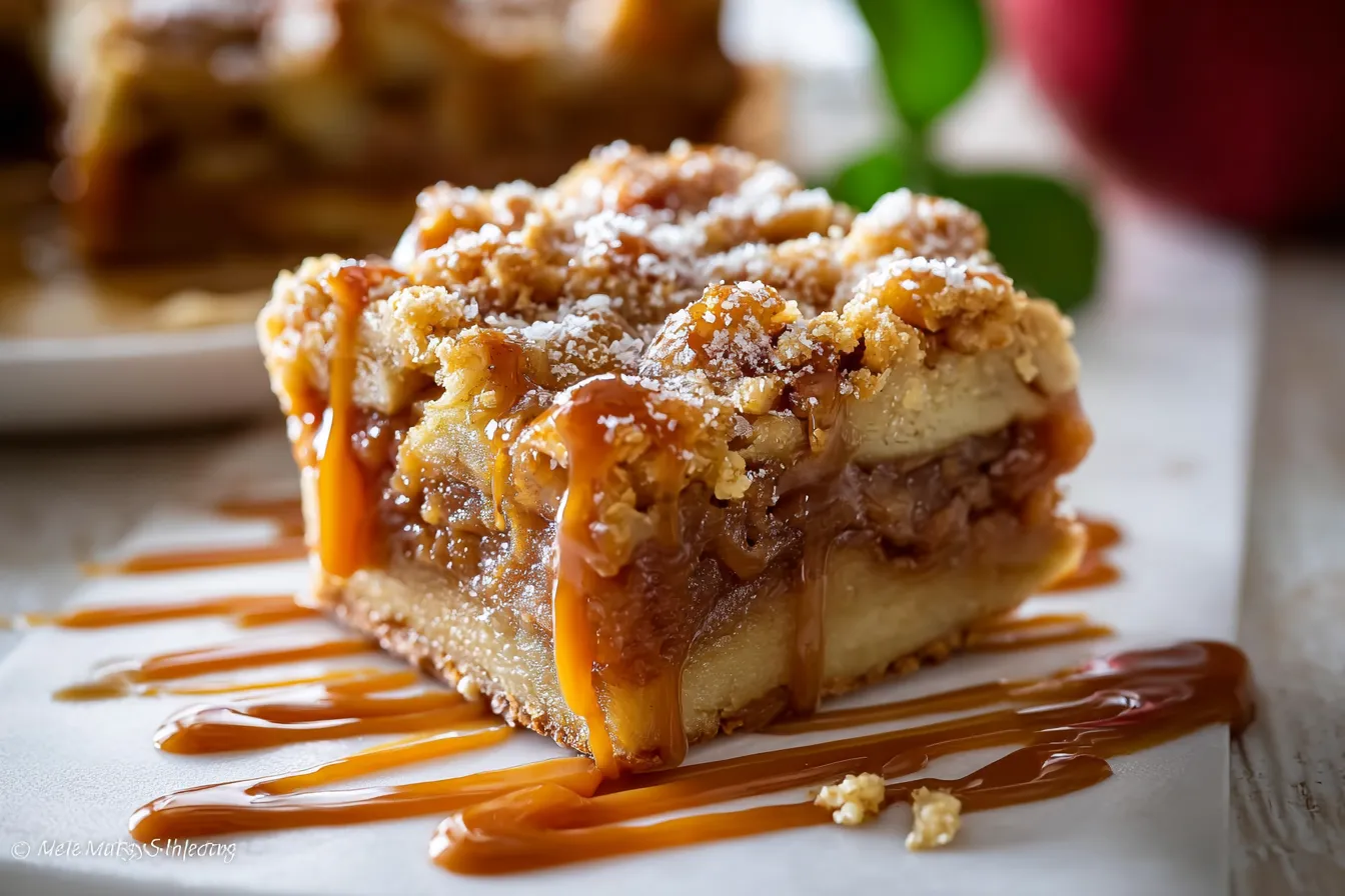 Savor Delicious Apple Pie Bars topped with Irresistible Salted Caramel Quick easy recipe perfect for any occasion Indulge in this sweet treat