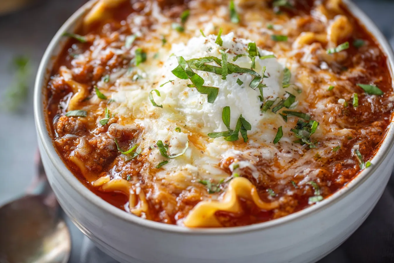 Savor the taste of Easy One Pot Protein Lasagna Soup a quick hearty meal packed with flavor and nutrition Perfect for busy weeknights