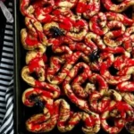 Delicious cinnamon rolls designed to look like bloody guts, perfect for Halloween festivities.
