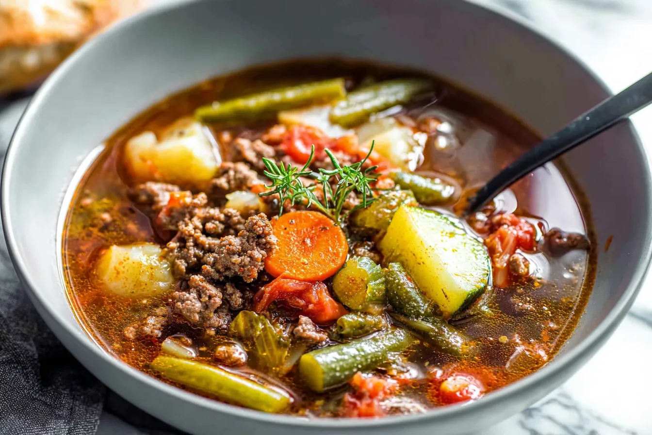 Savor the Delicious Hamburger Vegetable Soup a comforting bowl packed with flavor and nutrients Perfect for chilly days and family gatherings