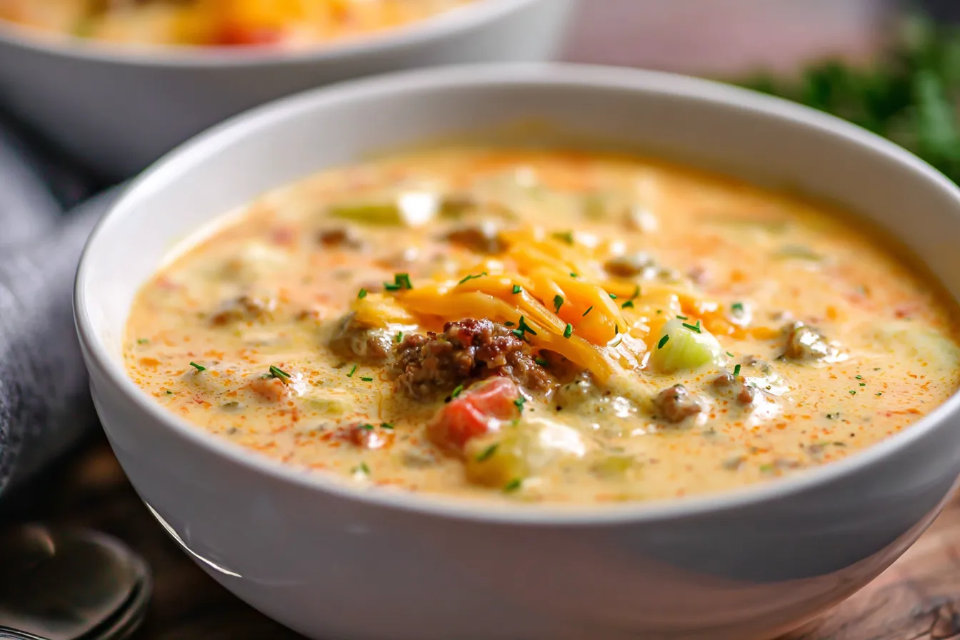 Imagine coming home after a long day, tired and ready to collapse—but knowing that a bowl of cheesy goodness awaits you. That’s the magic of Loaded Cheeseburger Soup. It’s the perfect weekday meal that’s as simple to make as it is delicious. You can whip it up in under 30 minutes, making it a go-to for busy families and anyone needing a quick dinner solution. With rich flavors from ground beef, creamy cheese, and a medley of vegetables, this soup will warm your soul and satisfy your hunger.