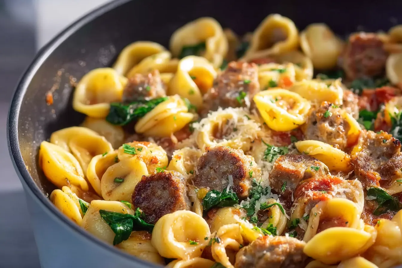 • Once the pasta is cooked, stir in the spinach and the cooked sausage. Cook for an additional 2-3 minutes until the spinach is wilted and everything is heated through.
