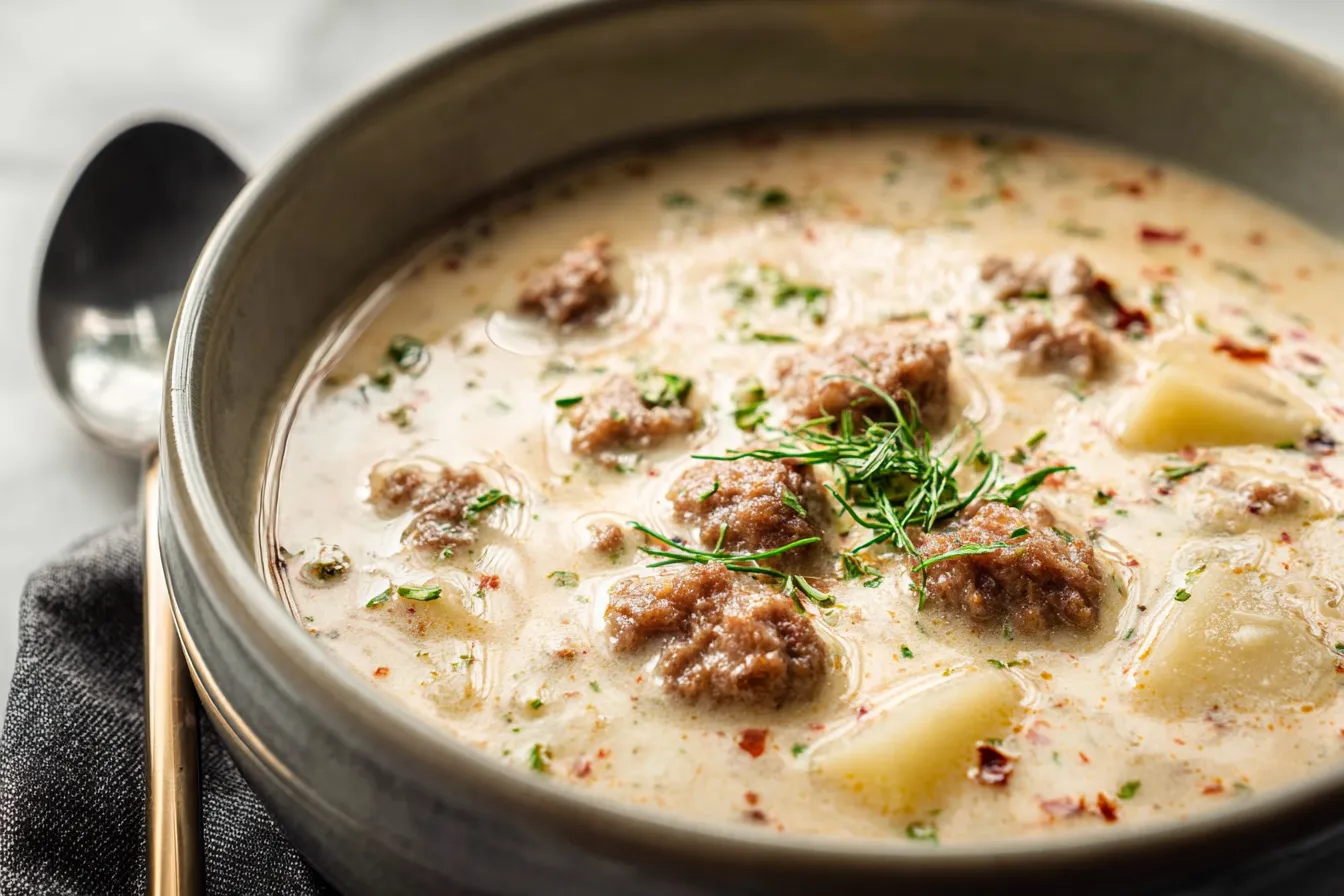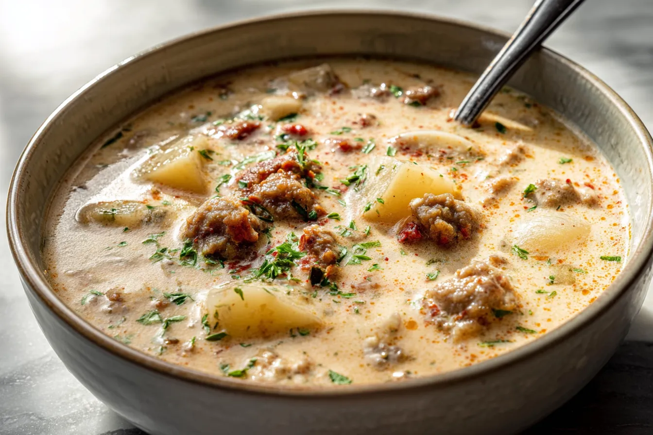 Indulge in our Irresistible Creamy Sausage Soup a comfort food delight thats rich hearty and perfect for warming up on chilly days Enjoy