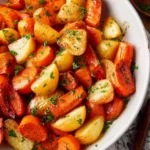 A colorful and nutritious side dish featuring roasted turnips and carrots, enhancing their natural sweetness and flavor.