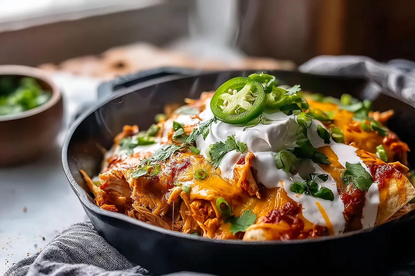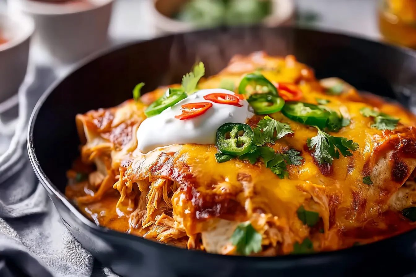 Savor this Savory Skillet Recipe featuring Rotisserie Chicken Enchiladas for a quick flavorful meal that everyone will enjoy Perfect any night